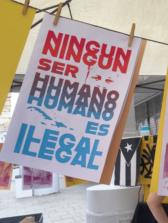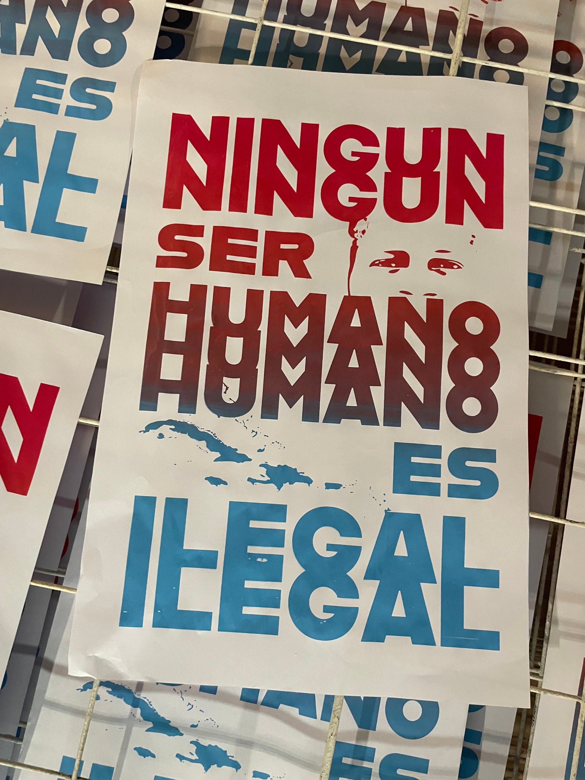 Impresa originalmente para un Sábado de Mercado en Rio Piedras, y en denuncia a los actos racistas y violentos en contra de las comunidades migrantes del Caribe.